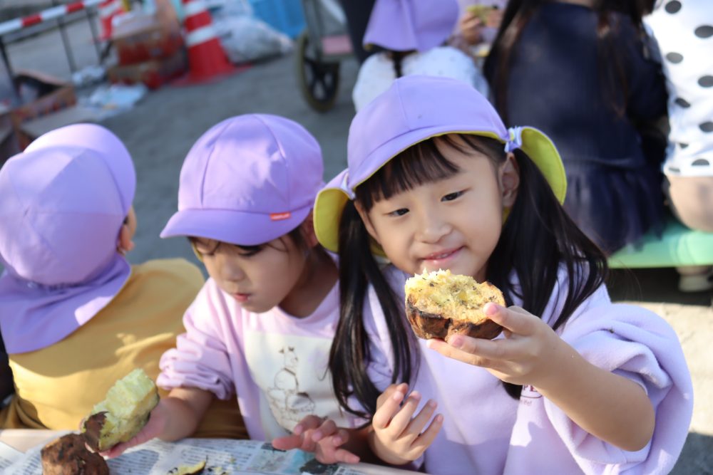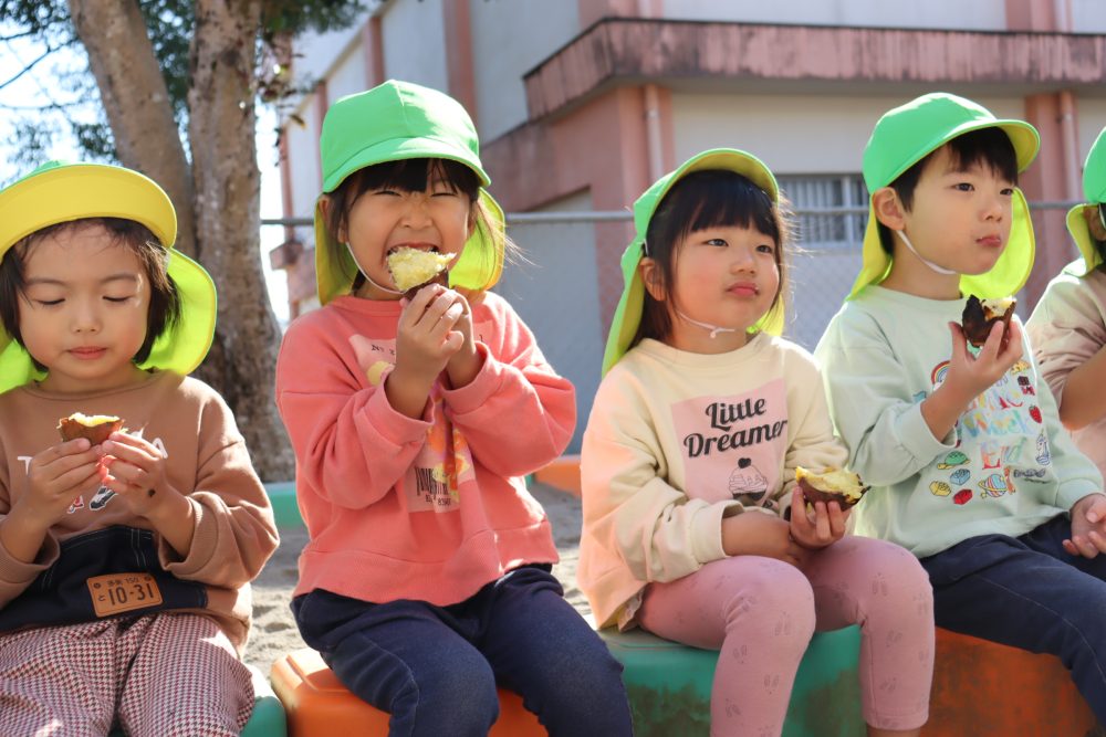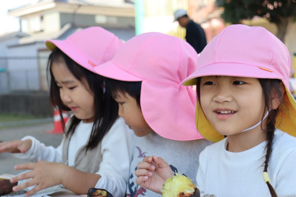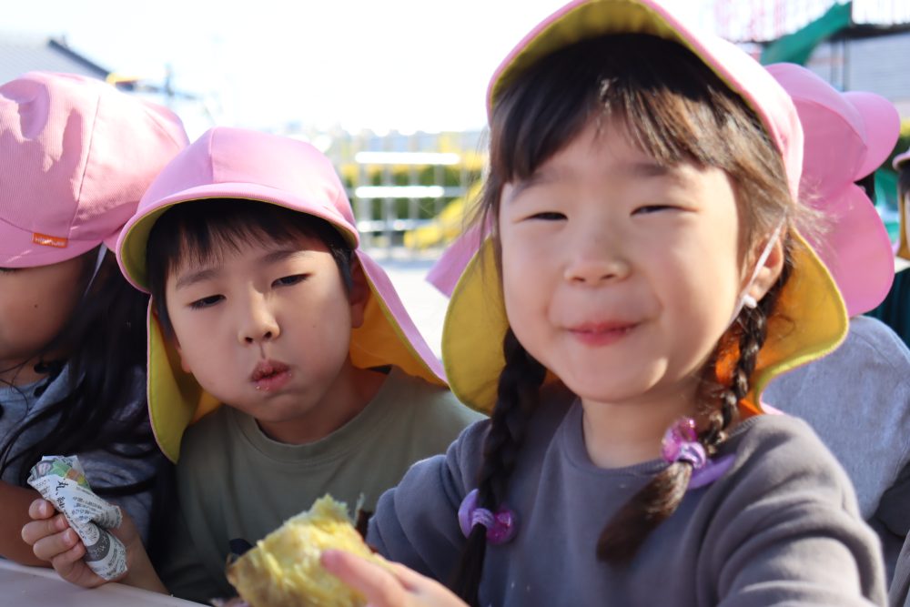 11月21日(金)は楽しみにしていた焼き芋会。おやっ,どこからともなく歌が聞こえてきましたよ。あつあつ,ほくほくのお芋にほっぺもゆるゆるです。