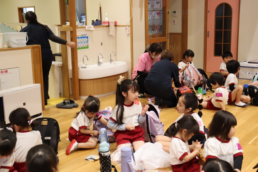 2月27日(金)のお別れ遠足はあいにくの雨。でも,ホールでひまわり組のお兄さんお姉さんといっしょにゲームを楽しんだり,お部屋で遊んだりしました。お兄さん・お姉さんとのおやつやお弁当はばくばくすすみました。